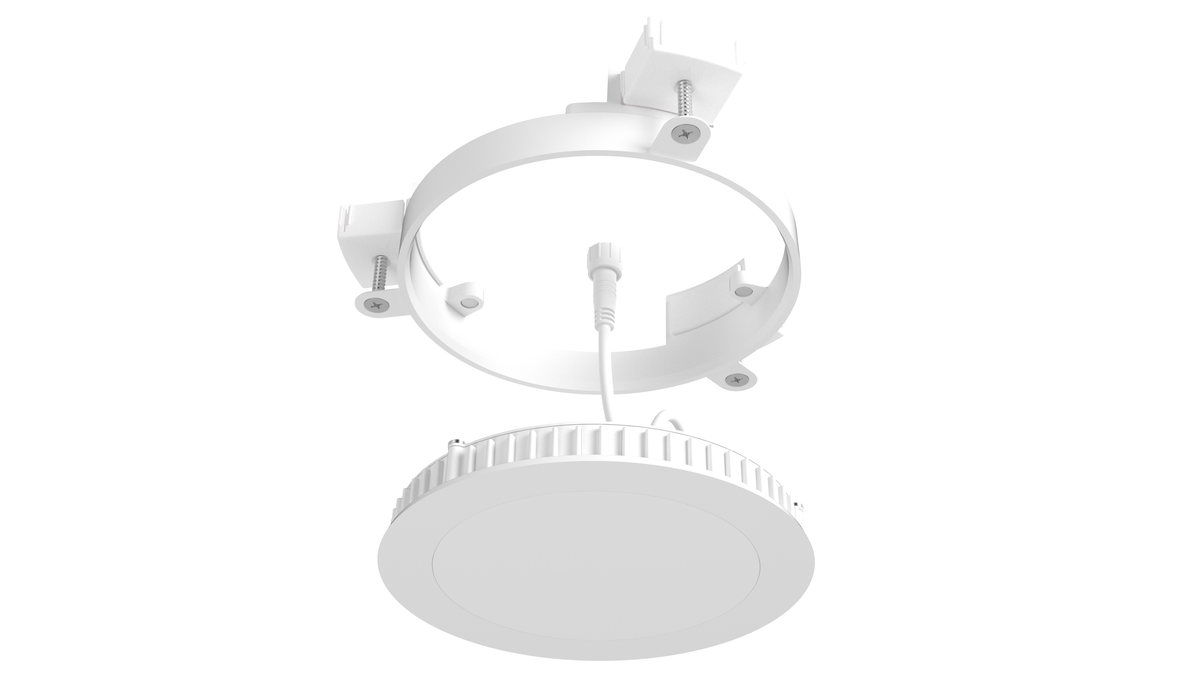 Our patented design integrates into the ceiling with a sturdy bracket, independent of the light unit itself. The flush mount bracket is easy to install and held in place by three screws allowing for a simple skim coat of drywall compound prior to painting the ceiling.